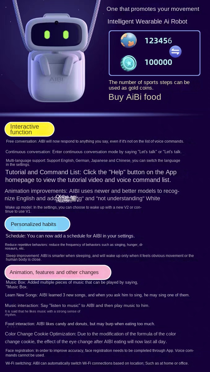 Authentic AiBi Robot Smart Pocket Electronic Pet Desktop Toy for Home Companionship with Chinese-English Two-Way Conversation