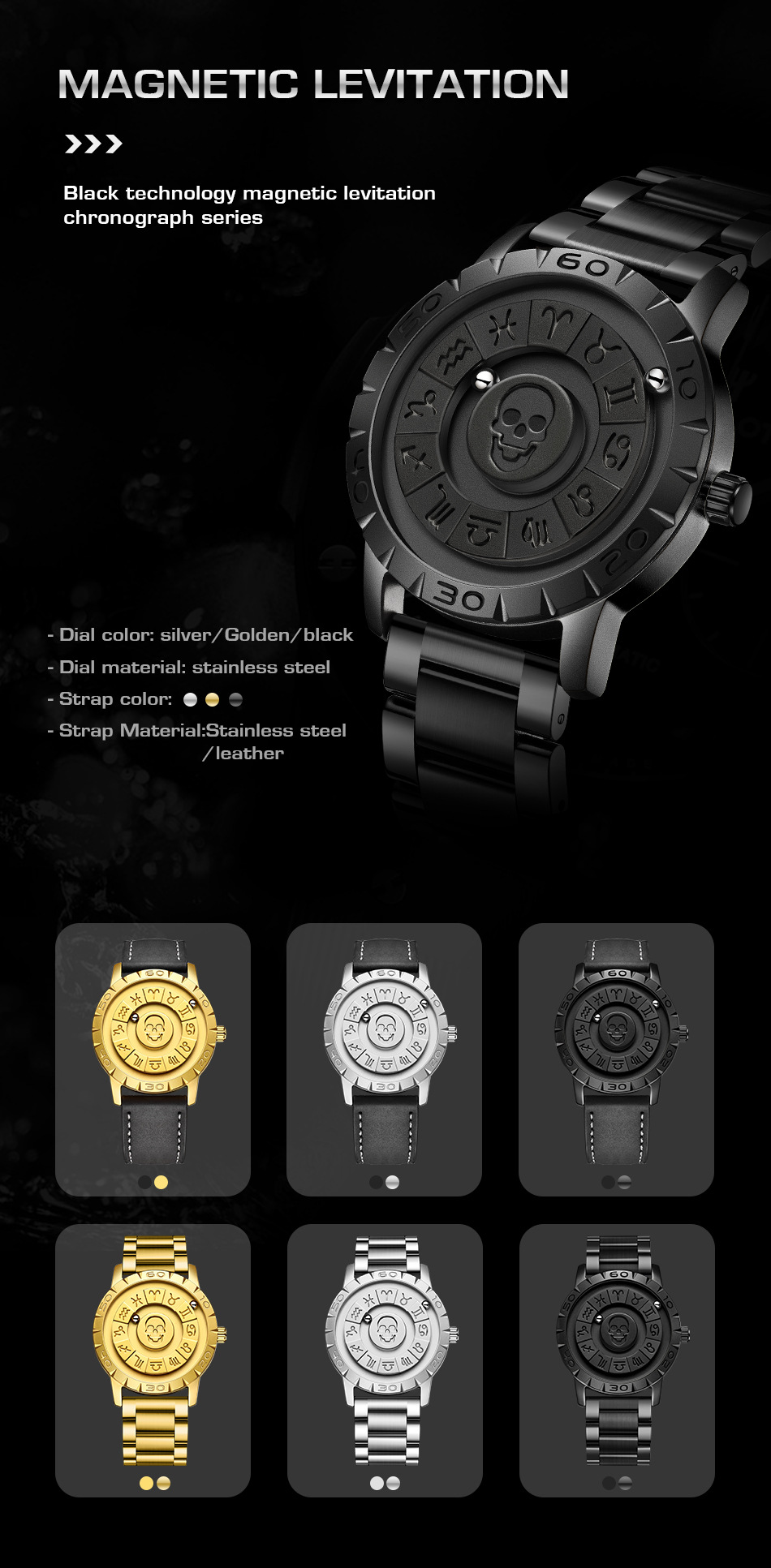 Color: Black Leather Strap, Silver Leather Strap, Gold Leather Strap, Gold Metal Strap, Black Metal Strap, Silver Metal Strap